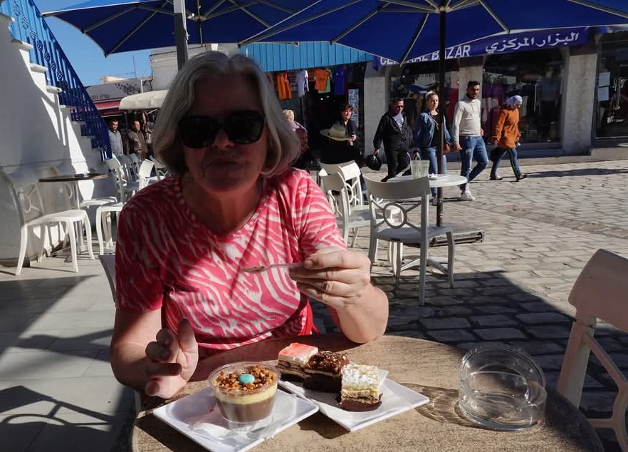 Evening meal in La Pecheur. Mistakenly ordered the fish by weight instead of the fixed price ones - so ended up with huge fish and a bill of more than we had budgeted for (trying to use our dinar before going home as it is a closed currency). Could have been quite embarrassing as the restaurant was cash only but luckily Mike had some euros in his wallet so we paid part dinar, part euro.. 🙄